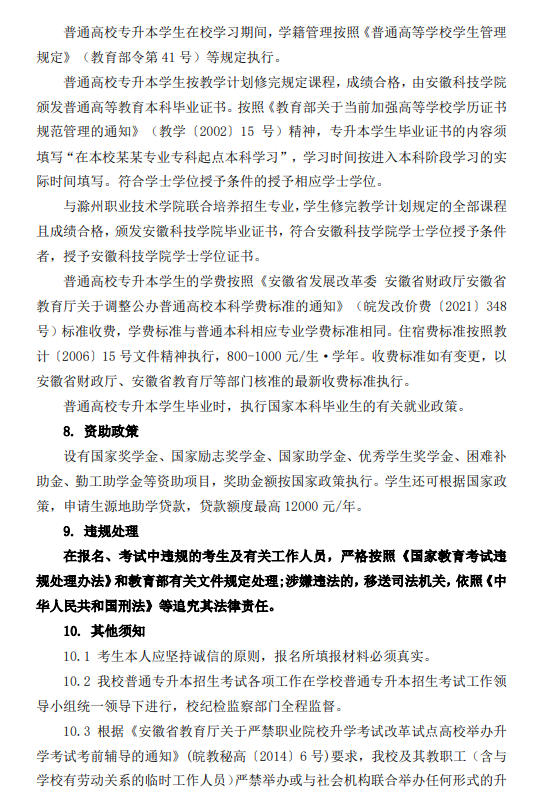 2.5 打印准考证:考生请于公共课考试前一周登录报名网站(zsbbm.ahzsks.cn)打印准考证,并根据准考证上规定的时间持第二代居民身份证和准考证到考点指定地点参加考试。专业课考试准考证:4 月 18 日上午 9:00 后,考生登录我校招生信息网查看专业课准考证打印安排,统一网上自行打印。请关注安徽科技学院招生信息网或安徽科技学院招生办公室官微“安科之生”。